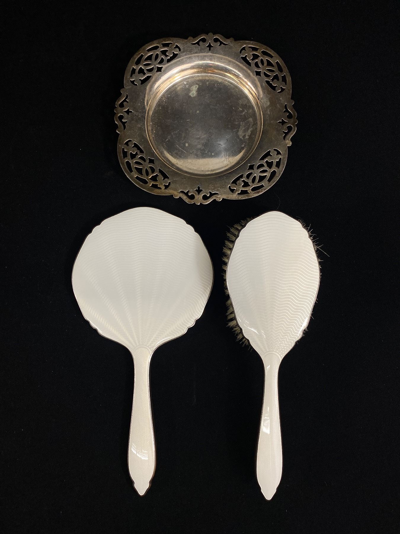 Very Nice Silver Plated Vanity Set . Brush, Mirror and Little Tray