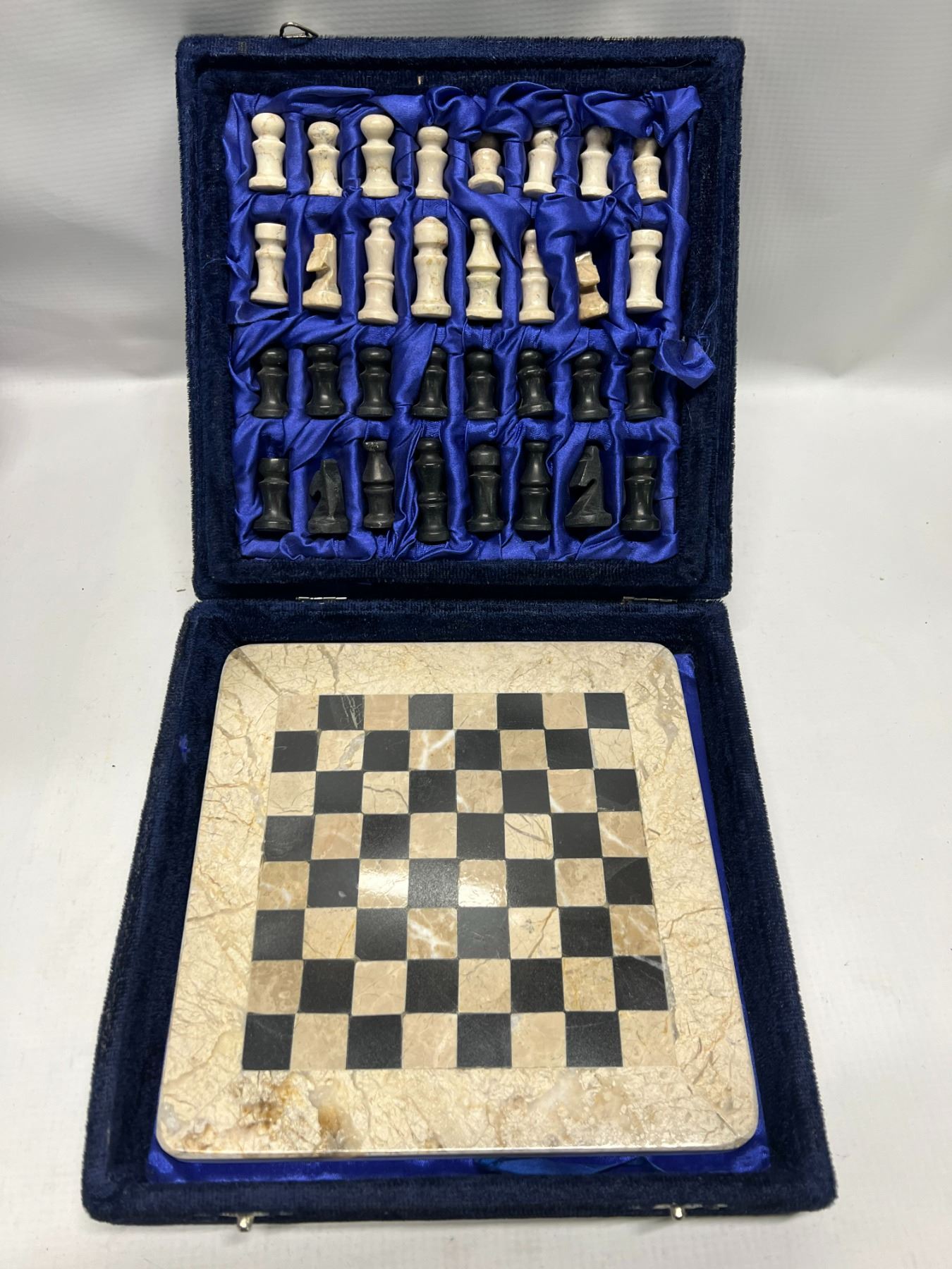 Very Nice Stone Chess Set w/original Box Smaller set (Board approx: 8x8")
