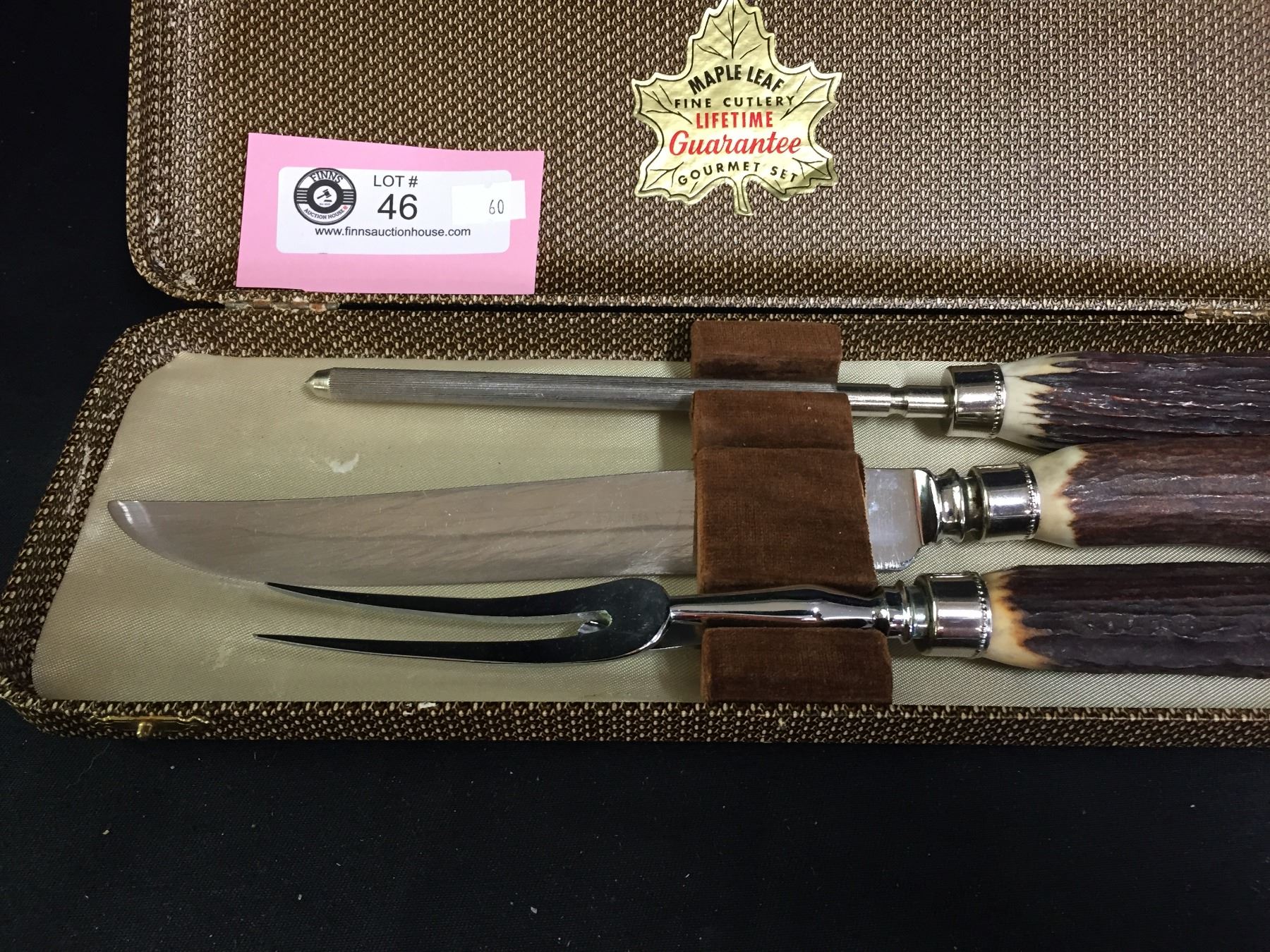 Very Nice Vintage Canadian Carving Set with Very Nice Handles in Original Box