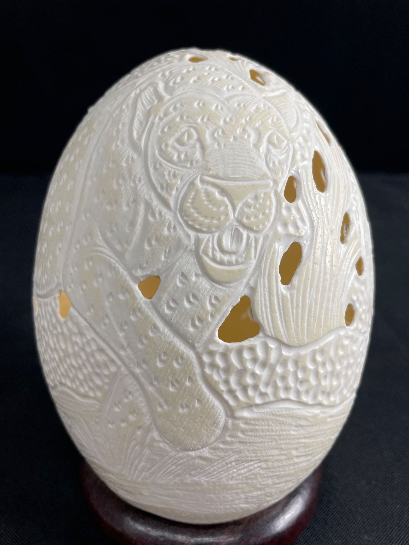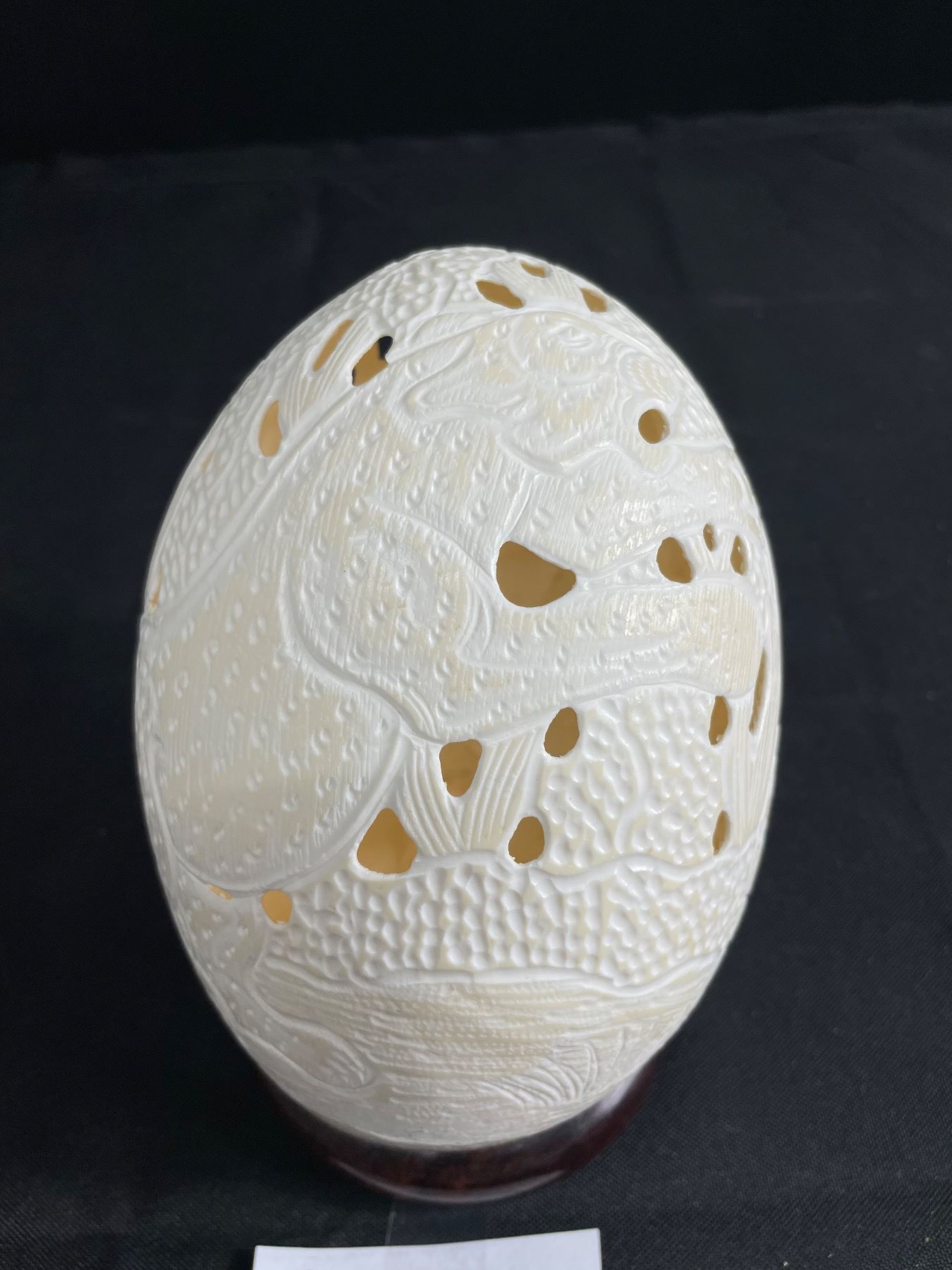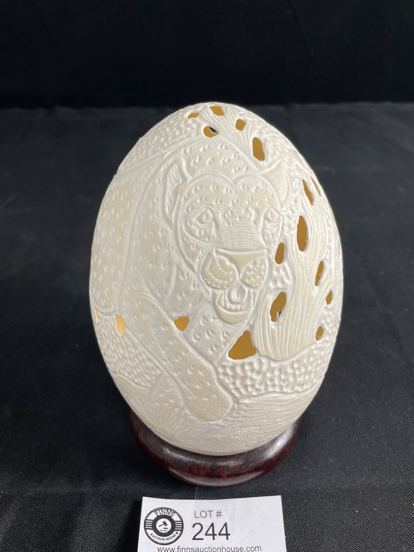 Very Nicely Carved Tigers Ostrich Egg Signed