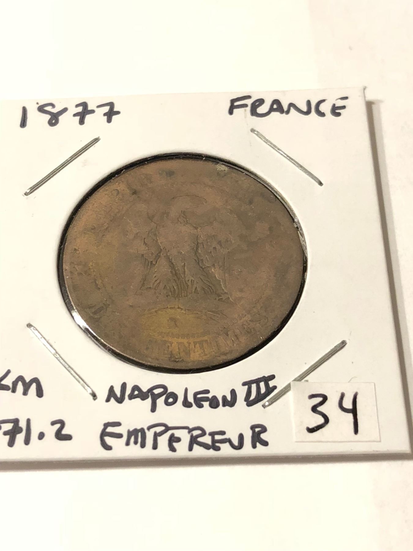 Very Old 1877 France Napoleon III Empereur 10 Centimes