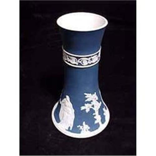 Signed ** 6 3/4 inch tall ** Dark Blue with White Classical Figures ** Artist initials J.C. incised ** Tungstall England ** Adams established 1657 ** Excellent Condition
