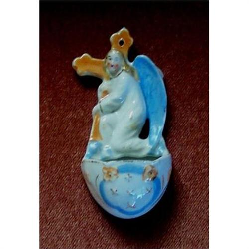 </font></strong>Painted Angel Holy Water Font of I think porcelain. There does not appear to be any marking on the back. It may be hand made. I looks to be very old. I purchased from an antique dealer in Belgium. </font>