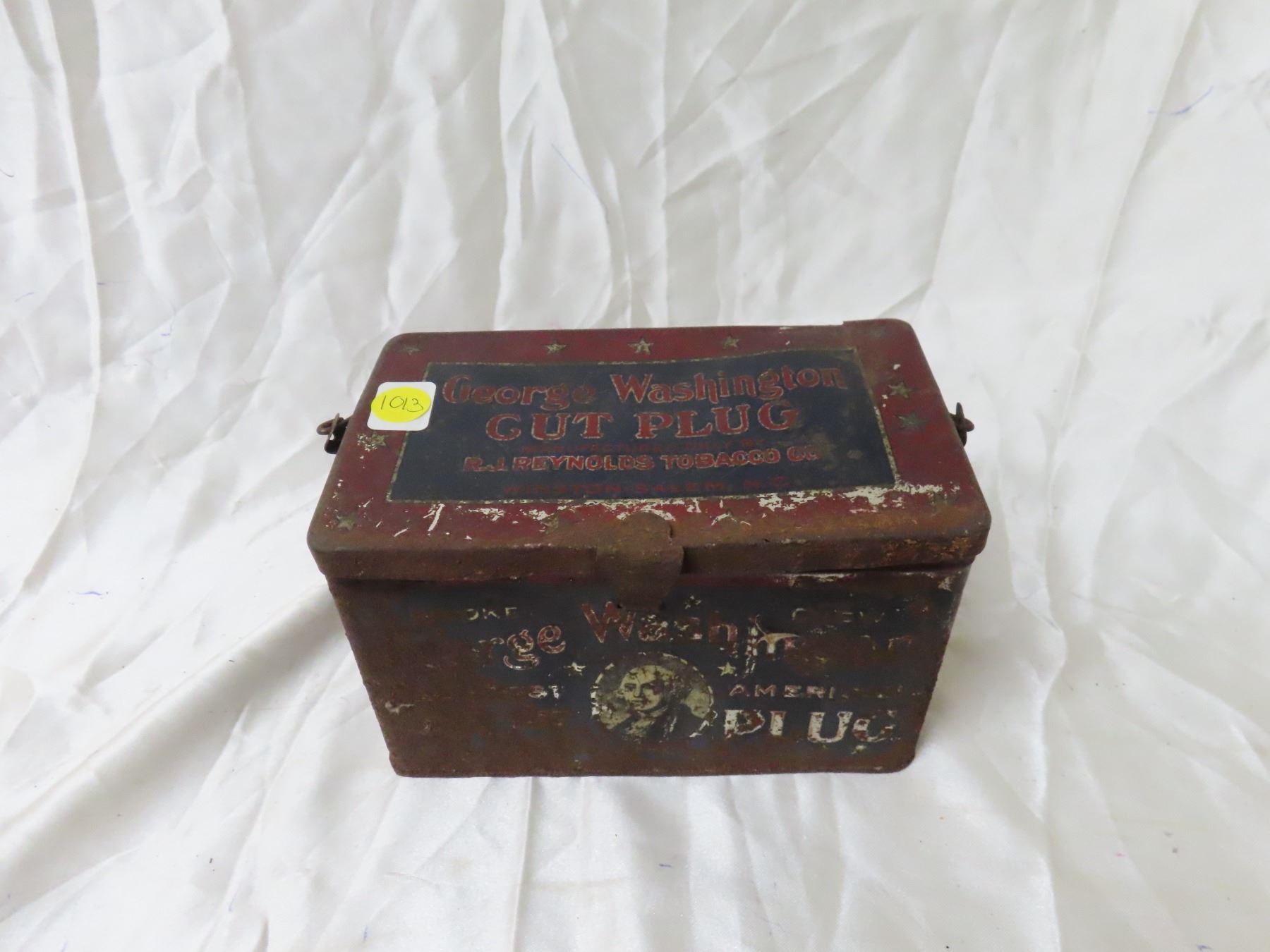 Very Old George Washington Cut Plug Tobbaco Tin w/ Handle