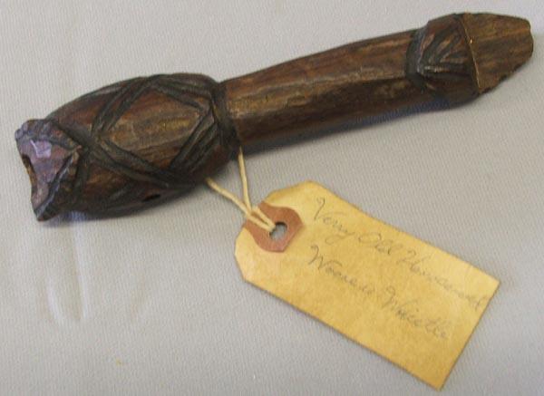 Very Old Handcarved Wooden Whistle. Measures 6''x1''. SHI $15.