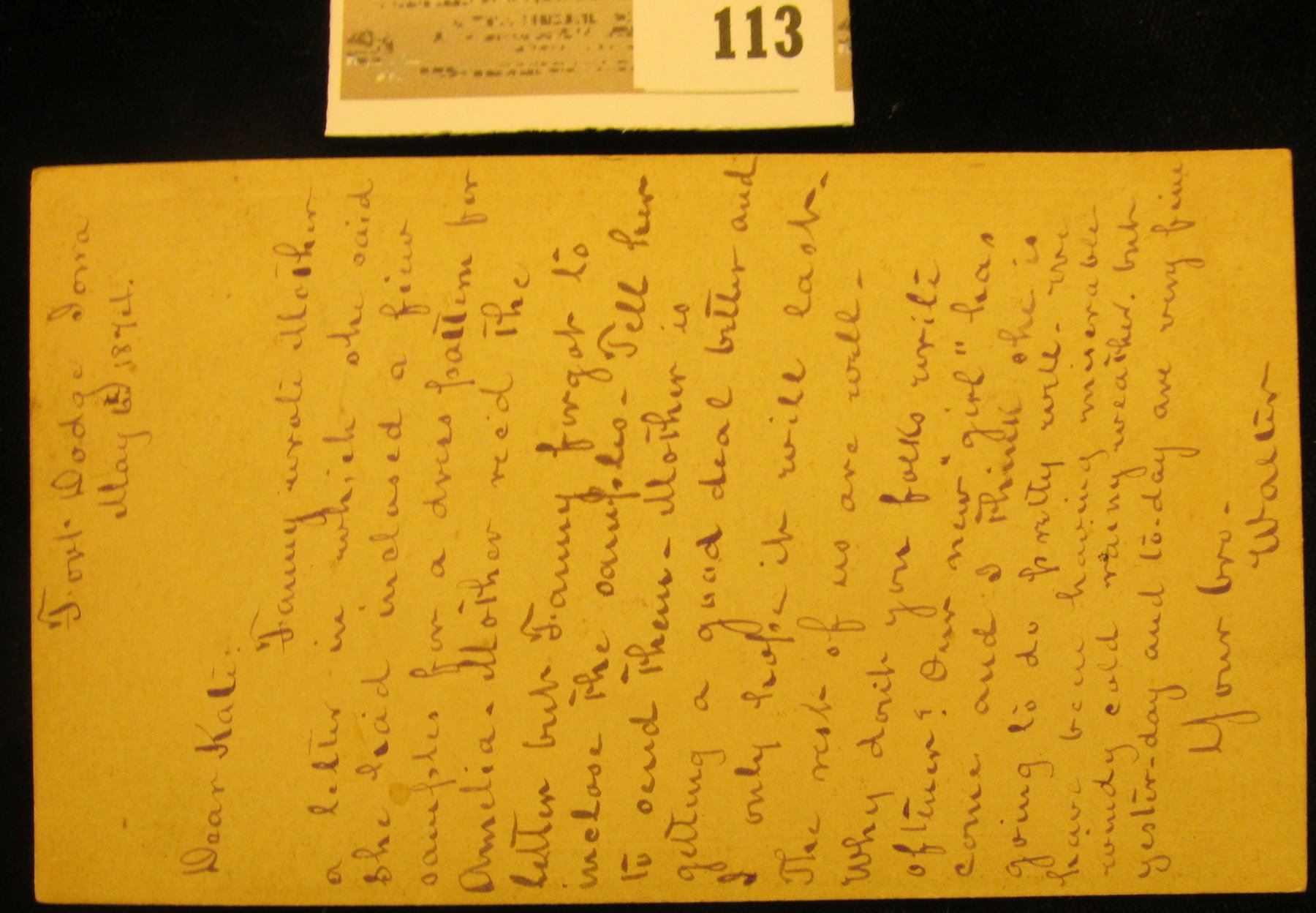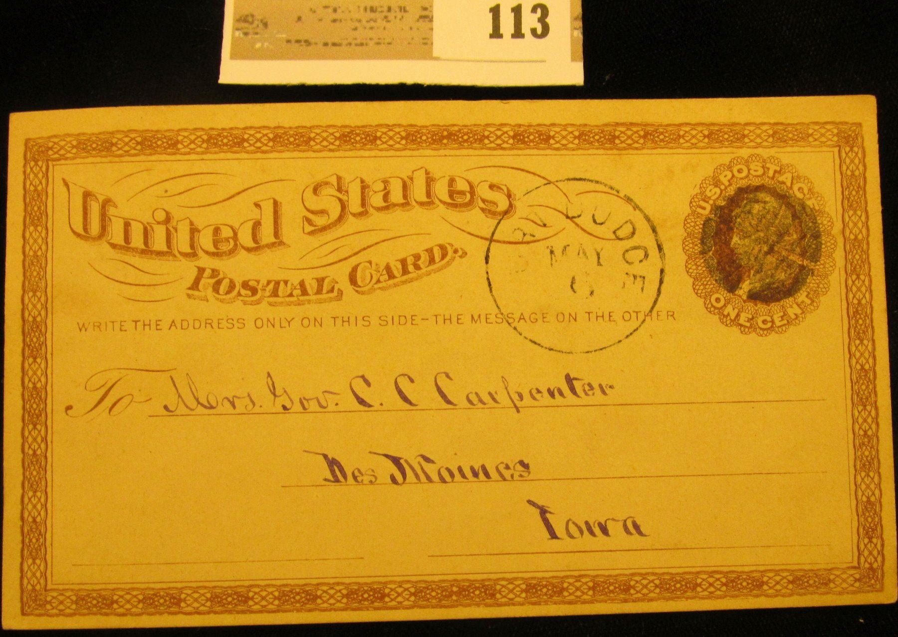 Very Old May 1874 Postal card addressed to Des Moines and postmarked "Fort Dodge".