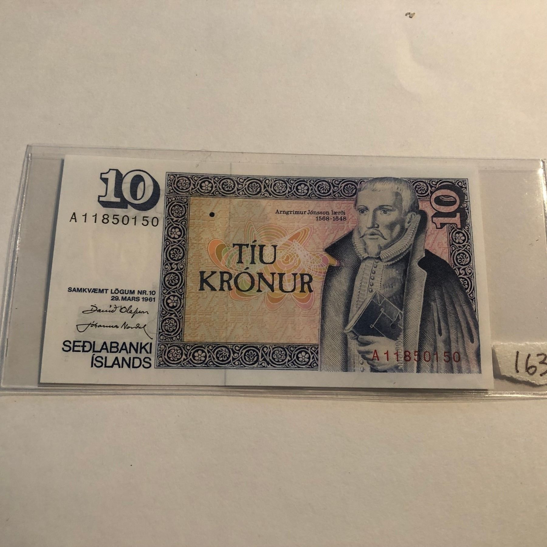Very Rare 10 TIU KRONUR SEDLABANKI ISLANDS Bill in UNC Condition