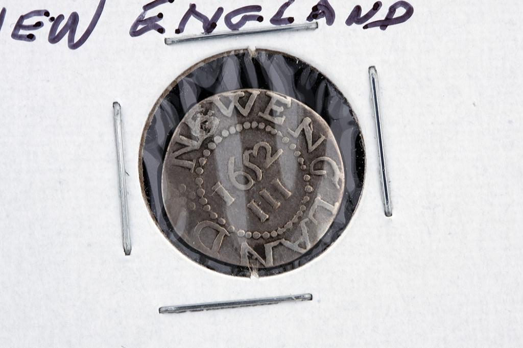 Very Rare 1652 Pine Tree 3 Pence Coin Marked "New England"Marked "New England"
