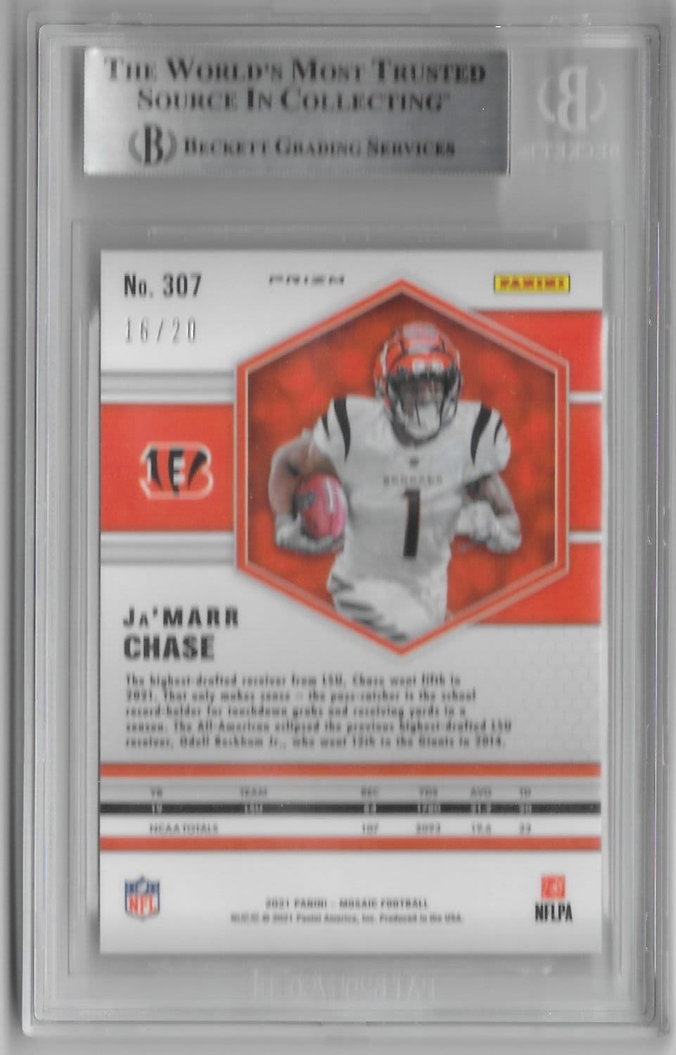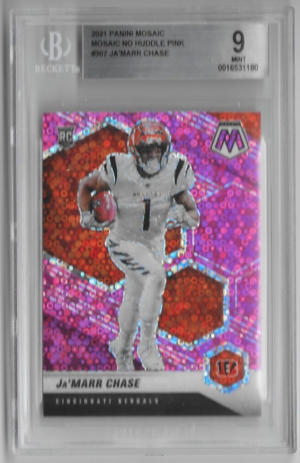 Very Rare - 2021 Panini Mosaic Mosaic No Huddle Pink Ja'Marr Chase 16/20 Card #307 Extremely Rare Card and the only one Beckett has graded! Beckett Grade 9