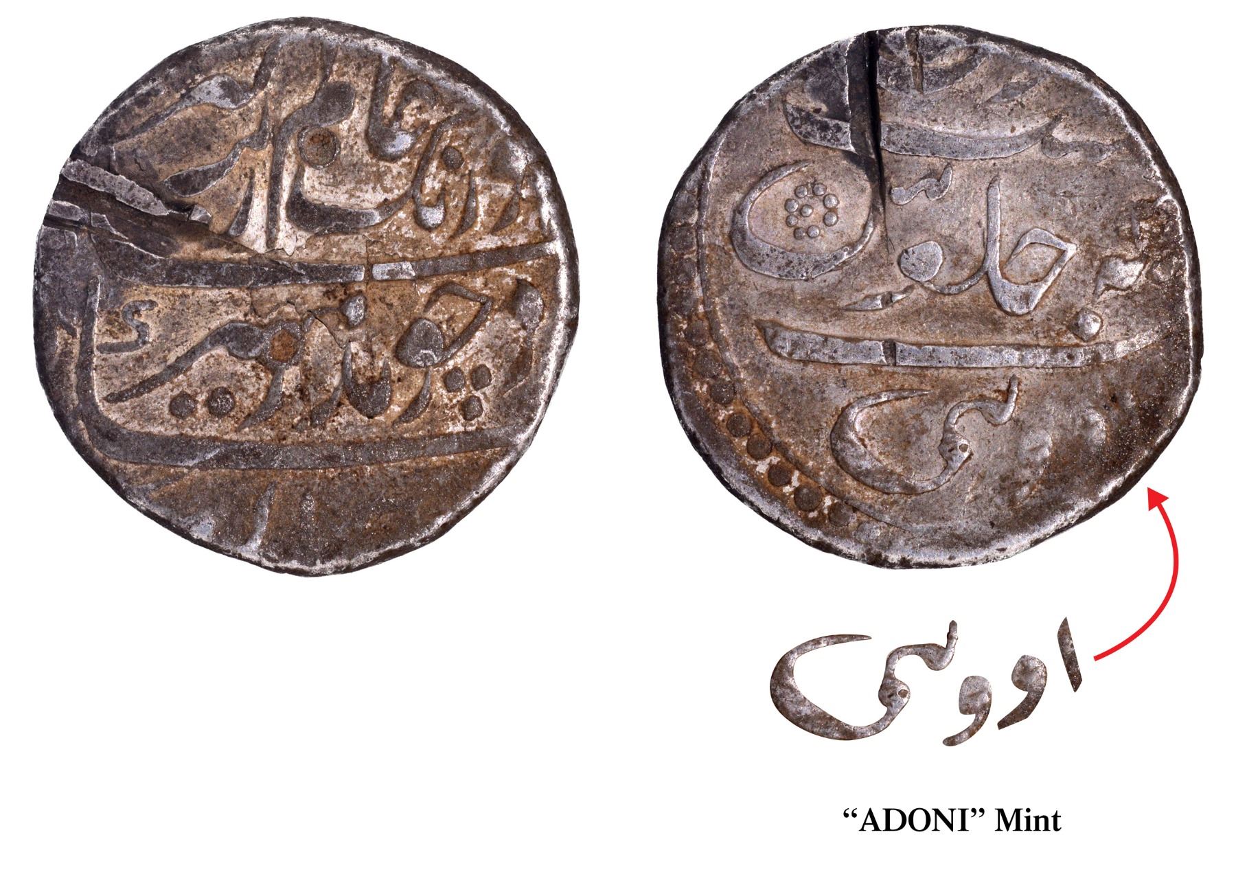 Numismatically, the capture and subsequent renaming of Adoni had an impact as well. Due to the swift name change, rupee coins bearing the name Adoni have become extremely rare. In addition to this coin without an epithet, there are a few coins that bear the epithet Dar us Zafar Qila Adoni. The historic significance of these changes adds to their value and appeal among collectors.