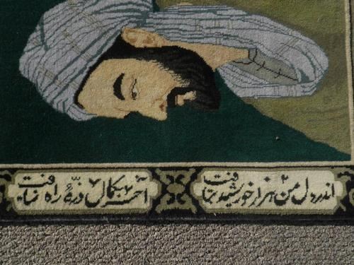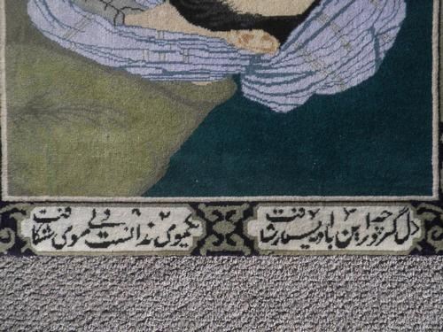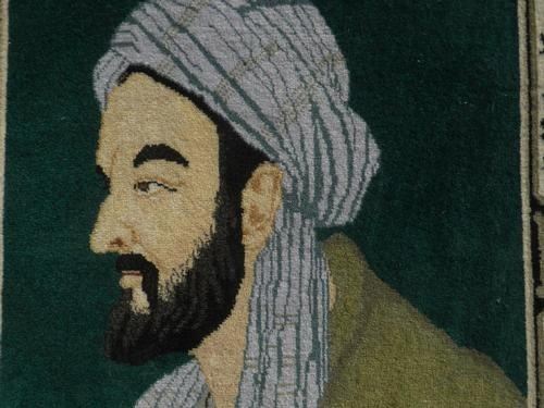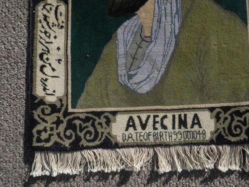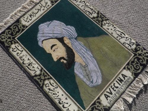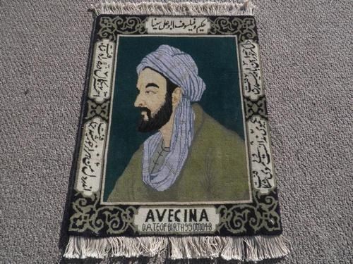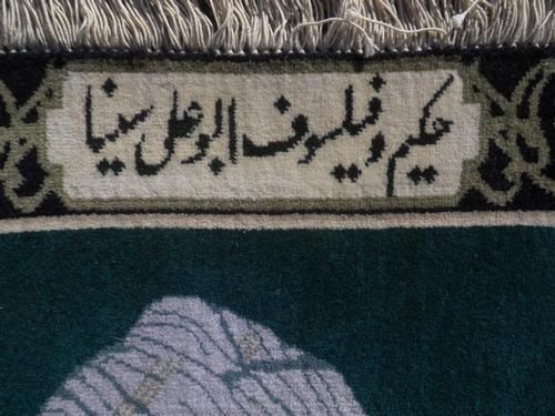 Simply gorgeous hand woven Persian Tabriz pictorial 'Bu-Ali Sina'. Size 2.2 X 1.8 feet, made of fine quality lamb's wool pile on cotton foundation, all natural vegetable dye, this is a really beautiful rug made for hanging on any wall. Depicted a famous Persian physician and philosopher 'Abu Ali Sina (Avecenna)'. He was born in 980 A.D. at Bukhara, capital of the Samanids, a Persian dynasty in Central Asia. Hand woven with phenomenal detail, only the most skilled carpet weavers are able to create masterpiece pictorial rugs as this special rug. From Tabriz, Iran.