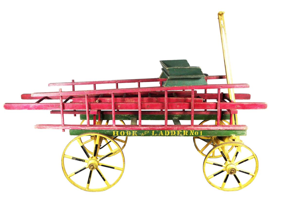 Very Rare Childs Hook & Ladder Fire Wagon #1. This is the only one of these we have ever seen and it is in Excellent original condition. 60 X 28 X 20 inches.