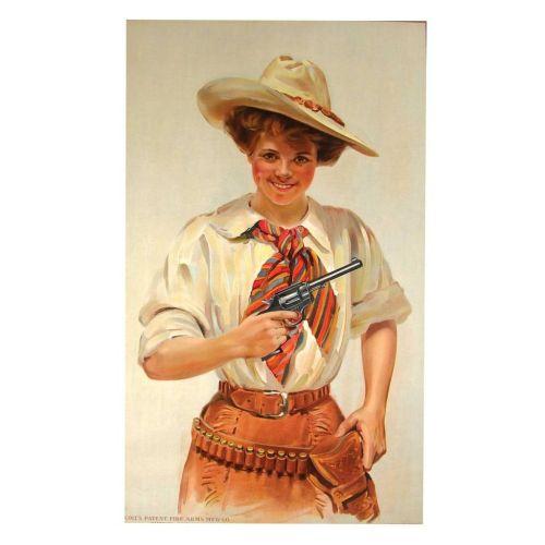 Extremely Rare Colt Patent Firearms Mfg. Company paper sign, Hartford, Conn. One of the most desirable Colt posters ever produced. Original bands top and bottom. Framed in period oak frame. Near mint condition. 18 X 29 1/2 inches.