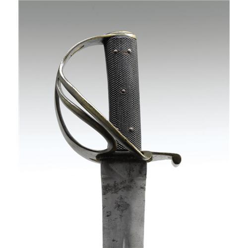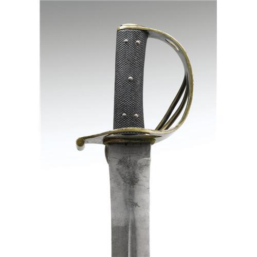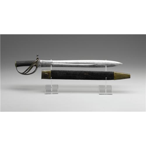 <B>Very Rare Confederate Imported Mole Naval Cutlass.</B></I> 25" overall length with 19.75" blade, checkered two-piece grips on hilt, brass guard, pommel, tapered steel blade stamped "MOLE" on the back side of the blade, ricasso having stamped rectangle enclosing "COURTNEY & TENNANT CHARLESTON, S.C.", leather scabbard with brass tip and throat. Minor nicks on an otherwise pristine blade. Brass elements enjoy deep, old toning. The leather shows moderate wear, crazing and some loss to finish. Overall a fine example of this elusive weapon. Although the British government was officially neutral during the Civil War, many English manufacturing firms conducted a thriving arms business with the struggling Southern Confederacy. Robert Mole & Sons of Birmingham sold uniform buttons and edged weapons to the Confederate Navy through military outfitters Courtney & Tennant of Charleston.<BR><BR><b>Shipping:</b> Large Collectibles (<a target="_blank" href="http://www.heritageauctions.com/common/shipping.php">view shipping information</a>)