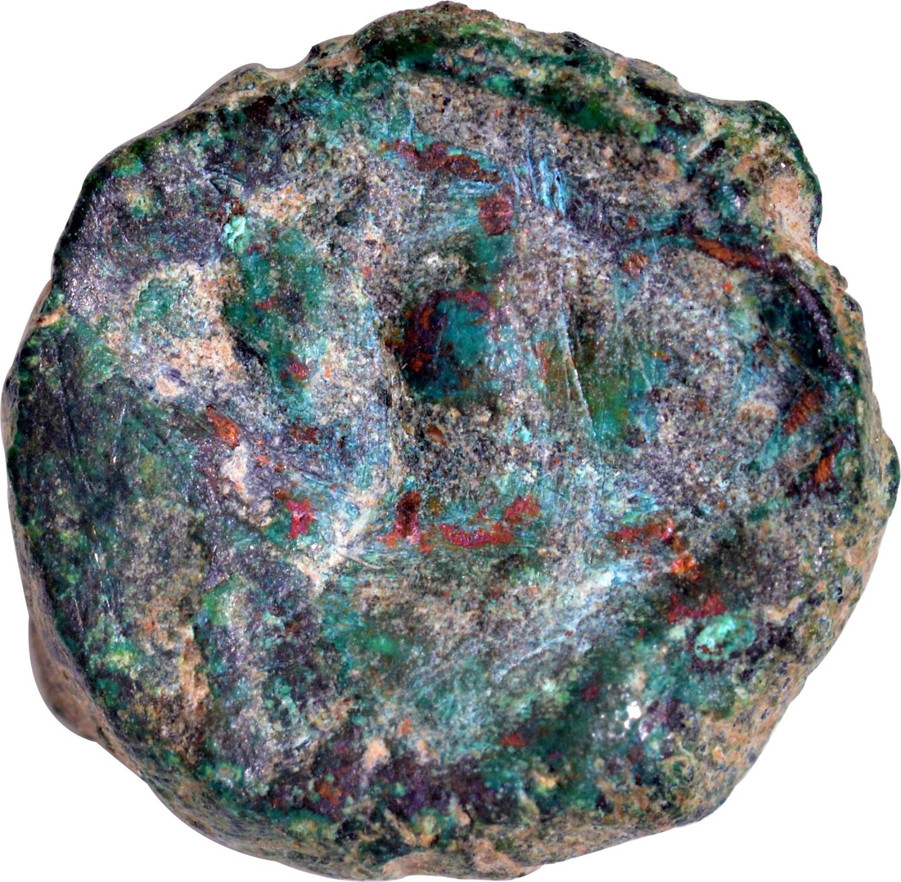 Gupta Dynasty, Chandragupta II (Vikramaditya) (375-415 CE), Copper Fraction (¼ Unit?), Bust type, Obv: the king's bust facing left, Rev: Garuda seated facing forward, traces of Brahmi legend below, 1.1g, 10.41mm, (BMC # Pl. XI-13-14/TGE, S. Kumar # Class III, Pg. No. 280), porous surface, choice very fine, Very Rare.