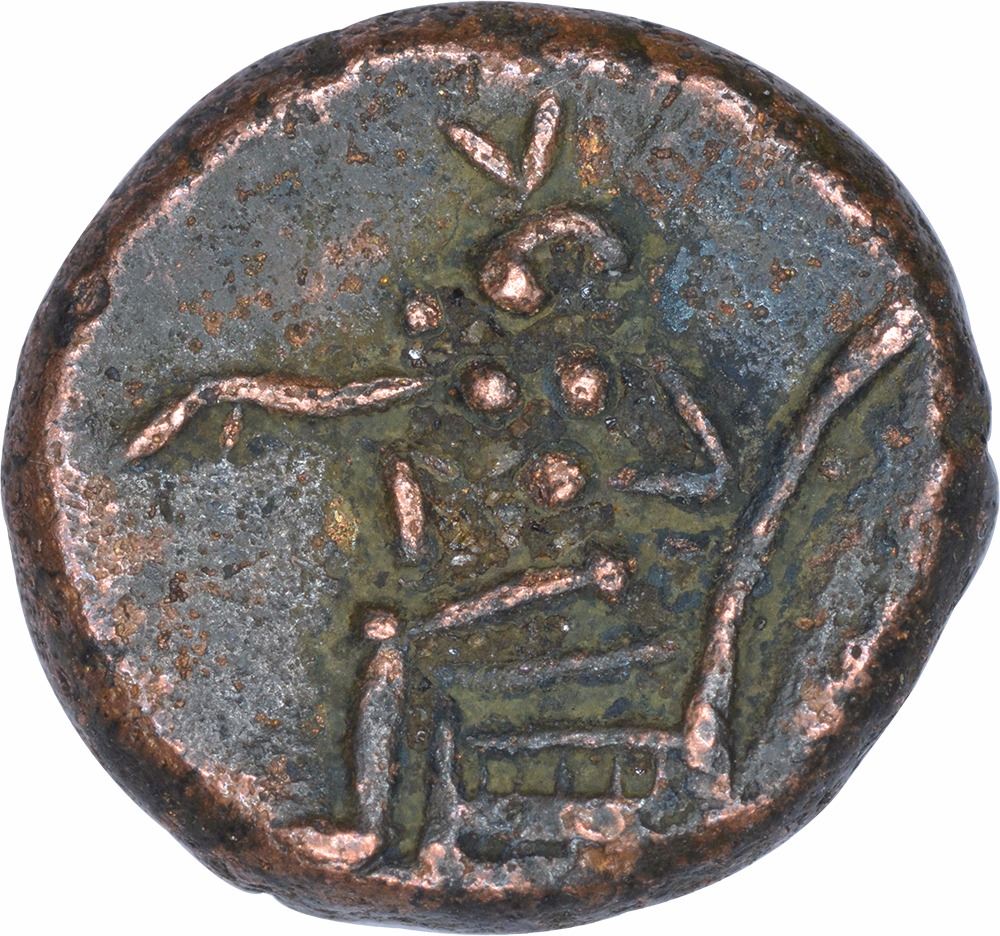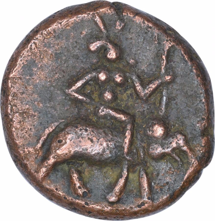 Tanjavur Nayakas, Copper Kasu, Obv: an unidentified deity seated on a elephant and holding a stick, Rev:queen seated on a throne, 1.90g, 11.47mm, about extremely fine, Very Rare.