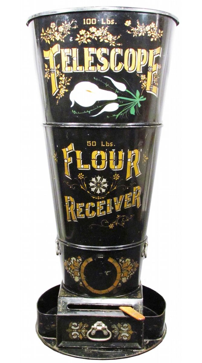 Very Rare Country Store Telescope Flour Receiver. Excellent original condition. 40 inches tall X 18 1/2 inch diameter at top.