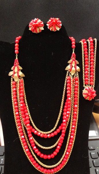 Excellent Vintage condition! Necklace is 18" long, Bracelet is 7 1/2" long. Earrings are clip back. Highly sought after by jewelry collectors!