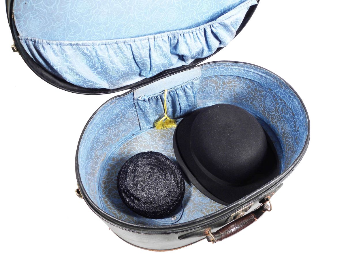 Very Rare Double Hat Box for His/Hers. Comes with hats. Some wear otherwise very good condition. 21 1/2 X 9 X 14 inches closed.