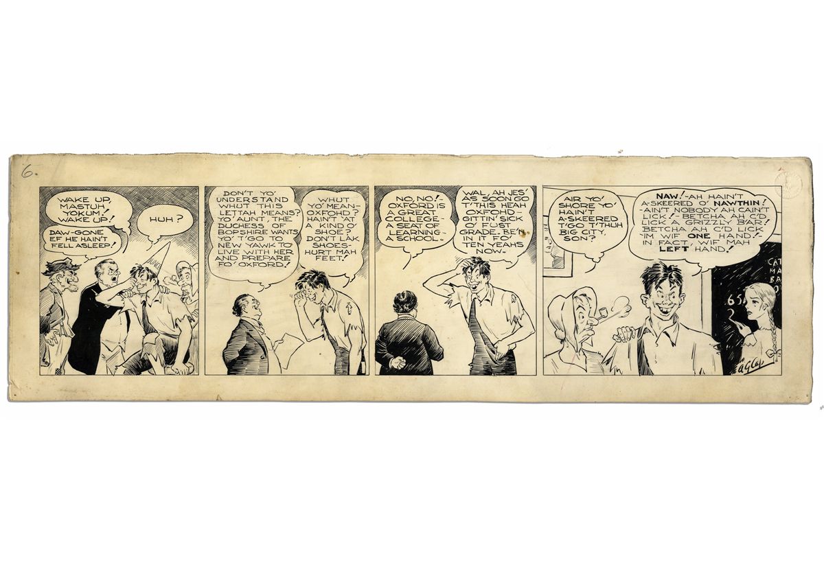 Very Rare Early 30's Version of ''Li'l Abner'' Signed by Al Capp -- Abner & Daisy Mae as Earlier Incarnations Are Rendered Differently But Recognizably -- 23''x 7'' -- Foxing & Toning, Near Fine