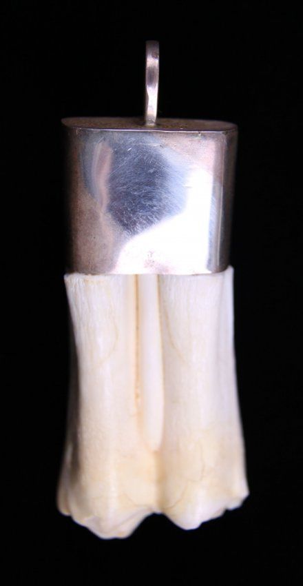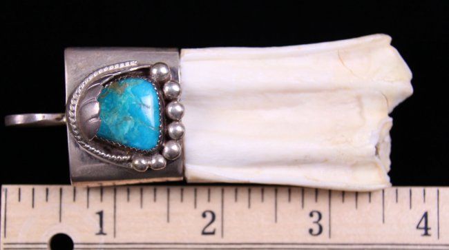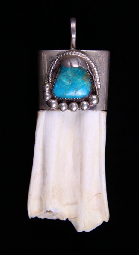 Very Rare Elephant Tooth Native American Silver and Turquoise Pendant. High quality turquoise stone. X-ray Silver Tested. Private collection of Joe Dan Osceola. Comes with Certificate of Authenticity signed by Joe Dan Osceola. (Size: See last photo for measurement.)