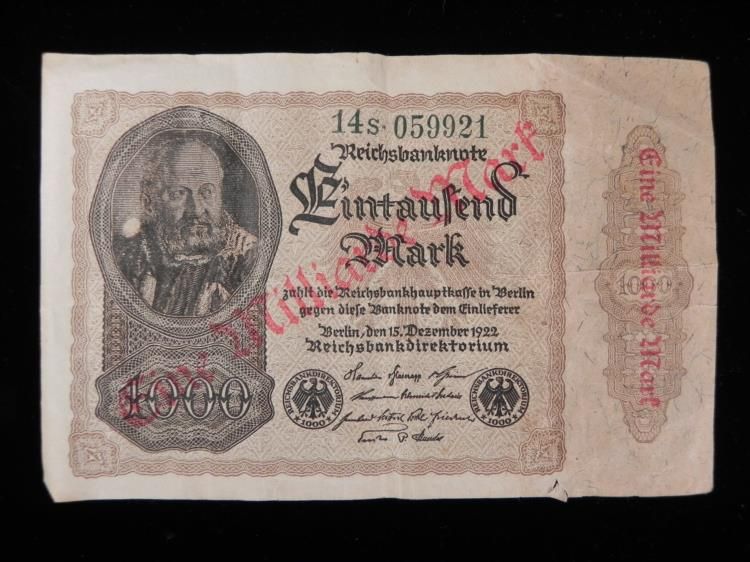 Offered is this Very Rare German Paper Money from 1922 that is Overstamped. Because of a shortage of paper money the bank overstamped a 1000 mark note to a 5 million mark note! This is the first we have seen and is very rare.
