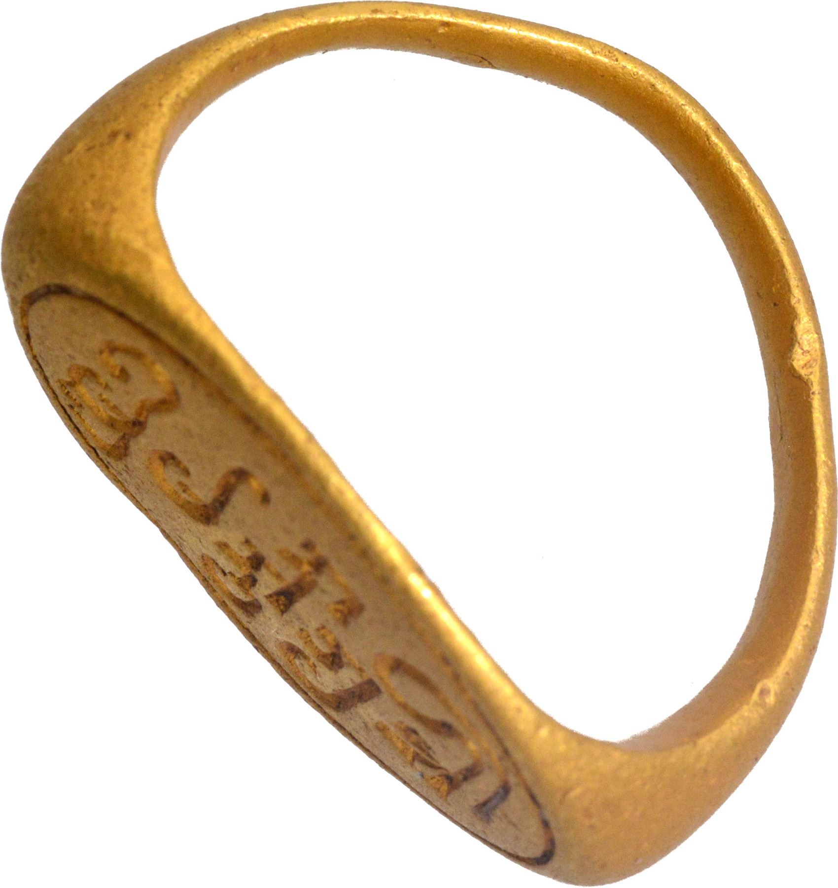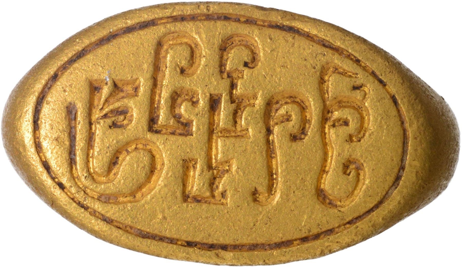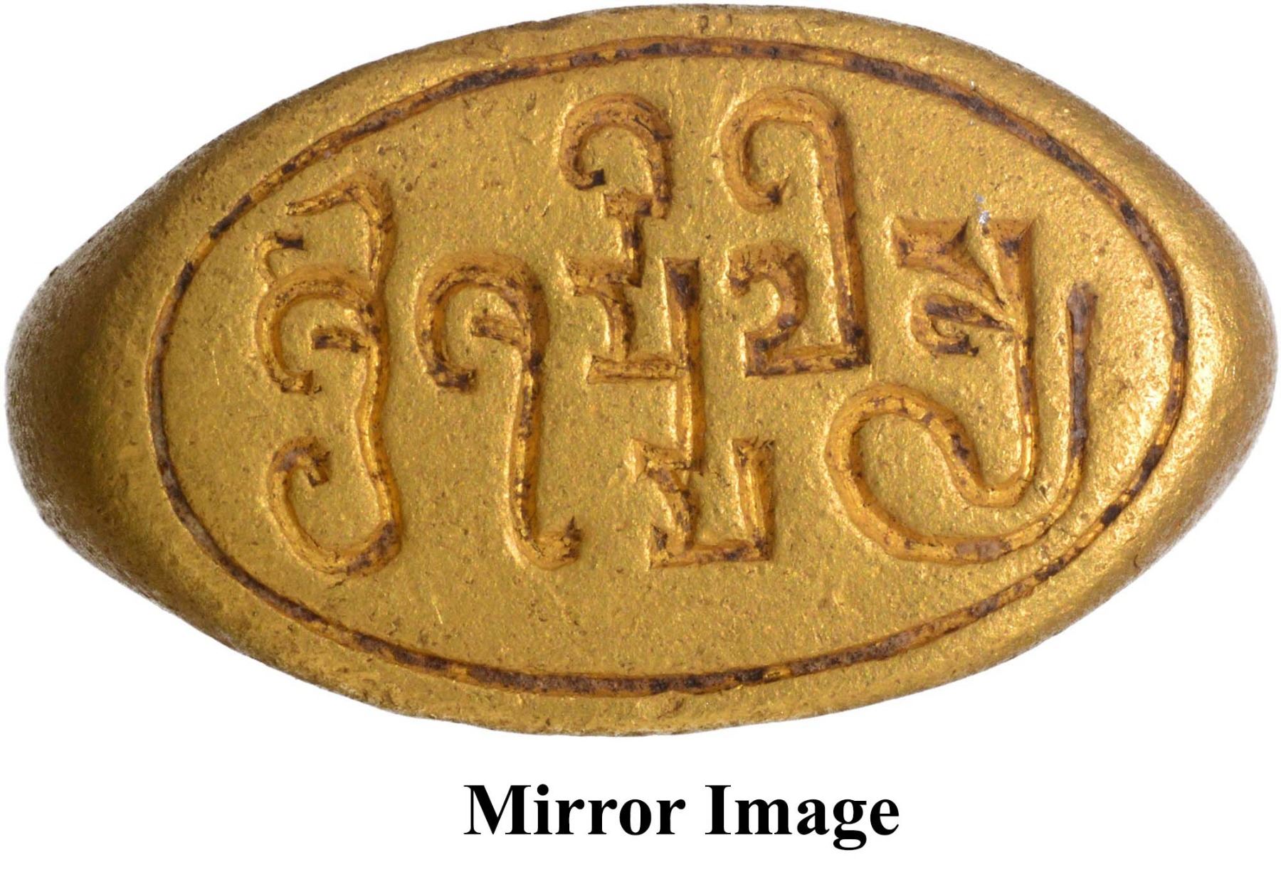 Seal, Gupta period (4-5 Century CE), Gold Signet Ring, Brahmi legend ""Shri Shurmmilasya" inscribed in retrograde on a plain surface, 8.27g, 22.46mm, 17.36mm inner diameter, about extremely fine, Very Rare.
