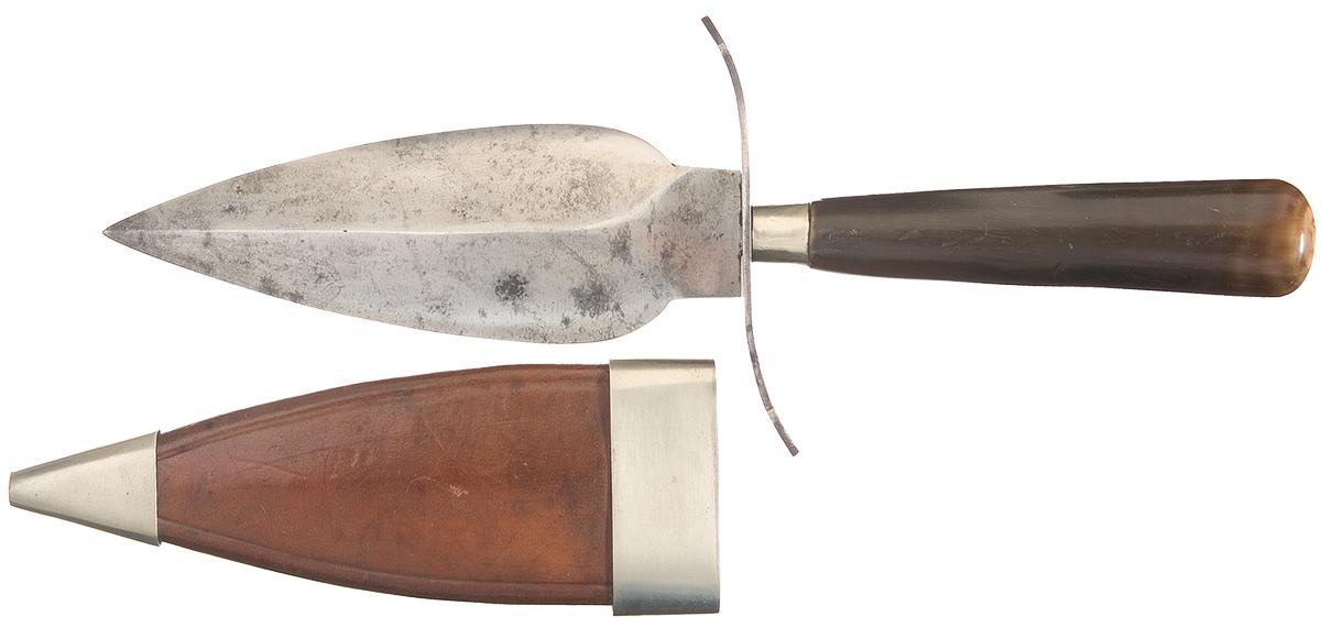 Very Rare Large 19th Century American Push Dagger with Coin Silver Mounts and Leather Sheath