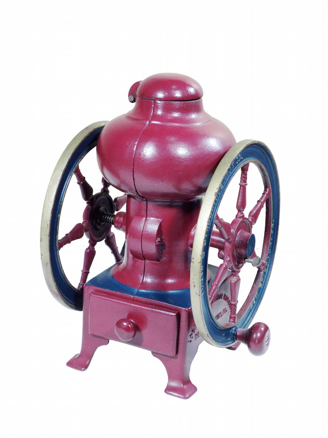 Very Rare Logan & Strobridge Iron Co. New Brighton, PA. Small coffee grinder. Excellent restored condition. 8 3/4 inch wheel. 13 inches tall.