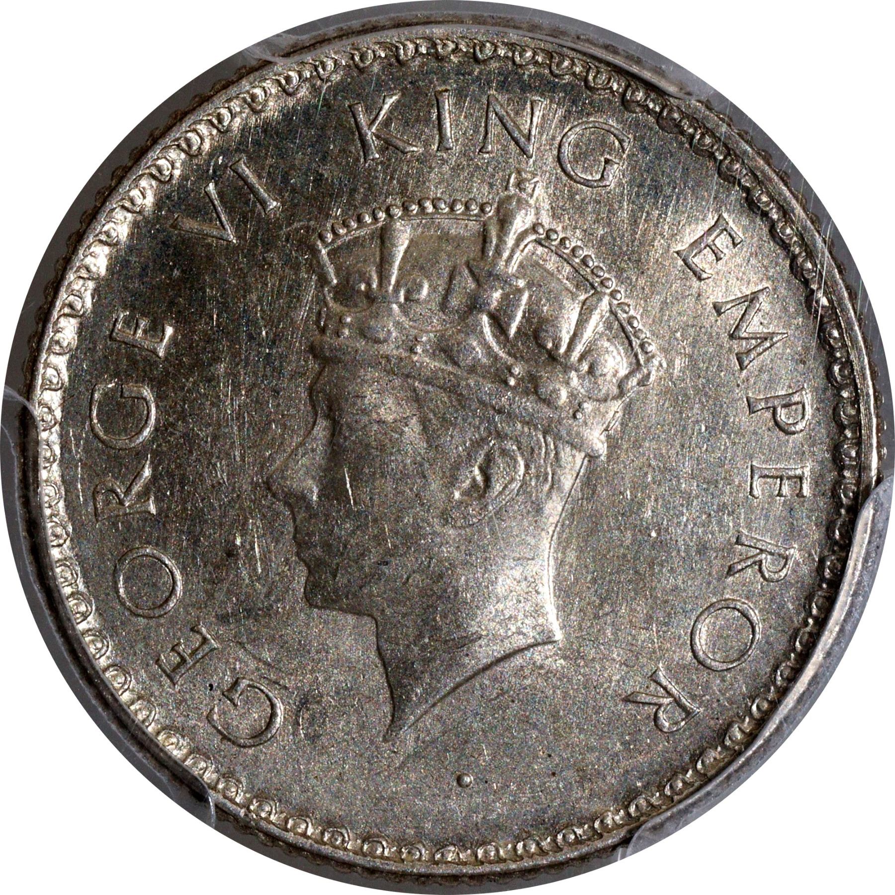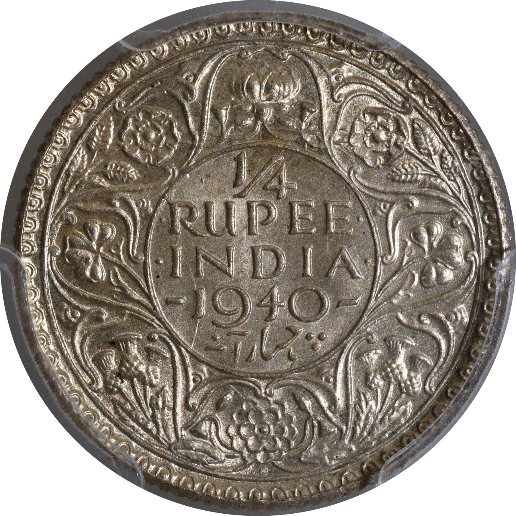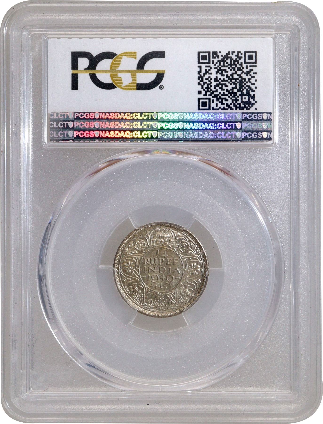 1940, King George VI, Silver ¼ Rupee, Bombay Mint, rev. I/dot, head type I, (PR # 462/GK # 1326), ghost image visible, graded & slabbed by PCGS as MS 64, Very Rare in this grade.