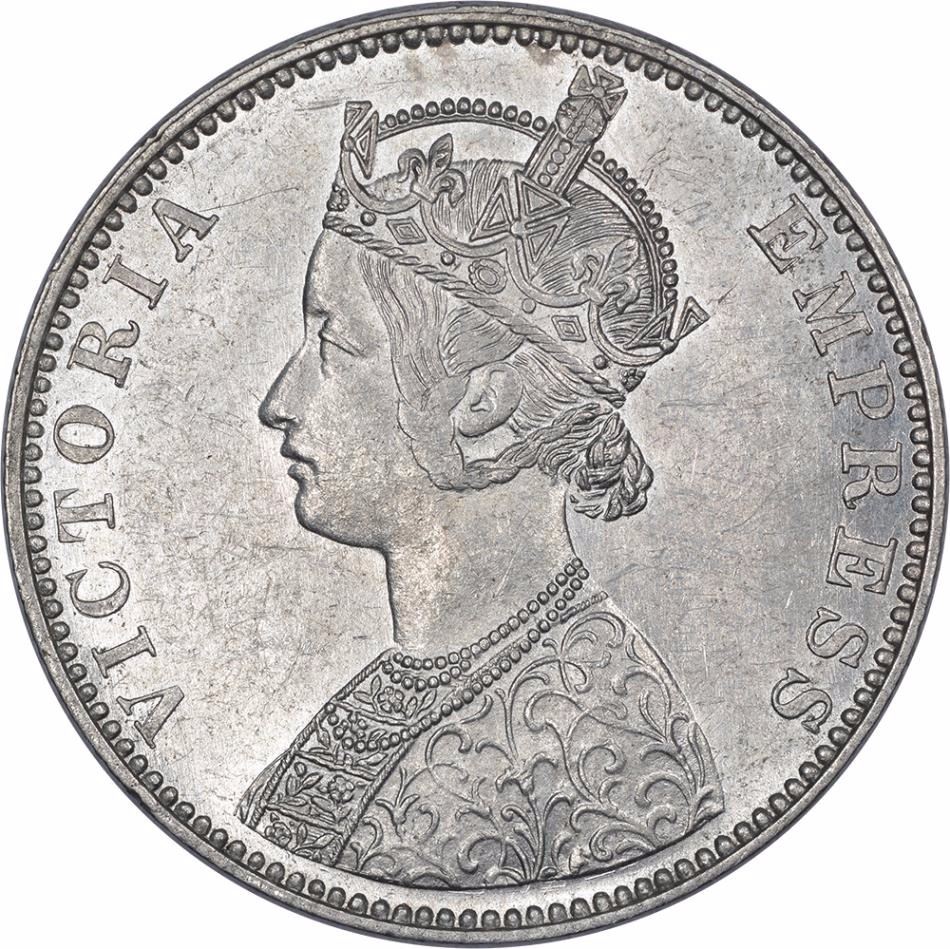 Bikaner, Ganga Singh, Silver Rupee,1892 AD, Obv:Queen Victoria bust to left, Rev:horizontal line divides inscriptions within beaded circle,11.70g , 30.41mm, (KM # 72), about UNC, Very Rare.