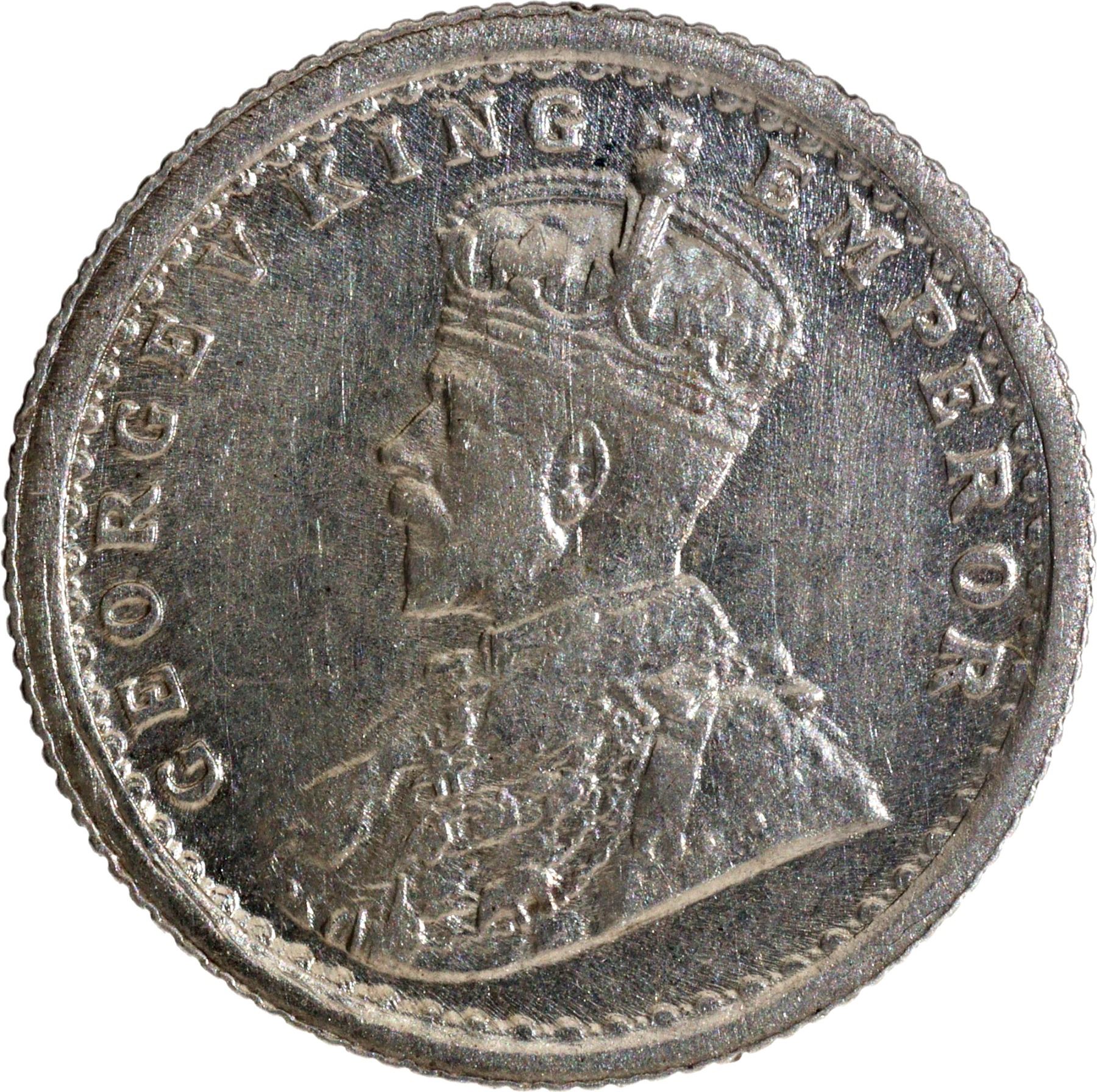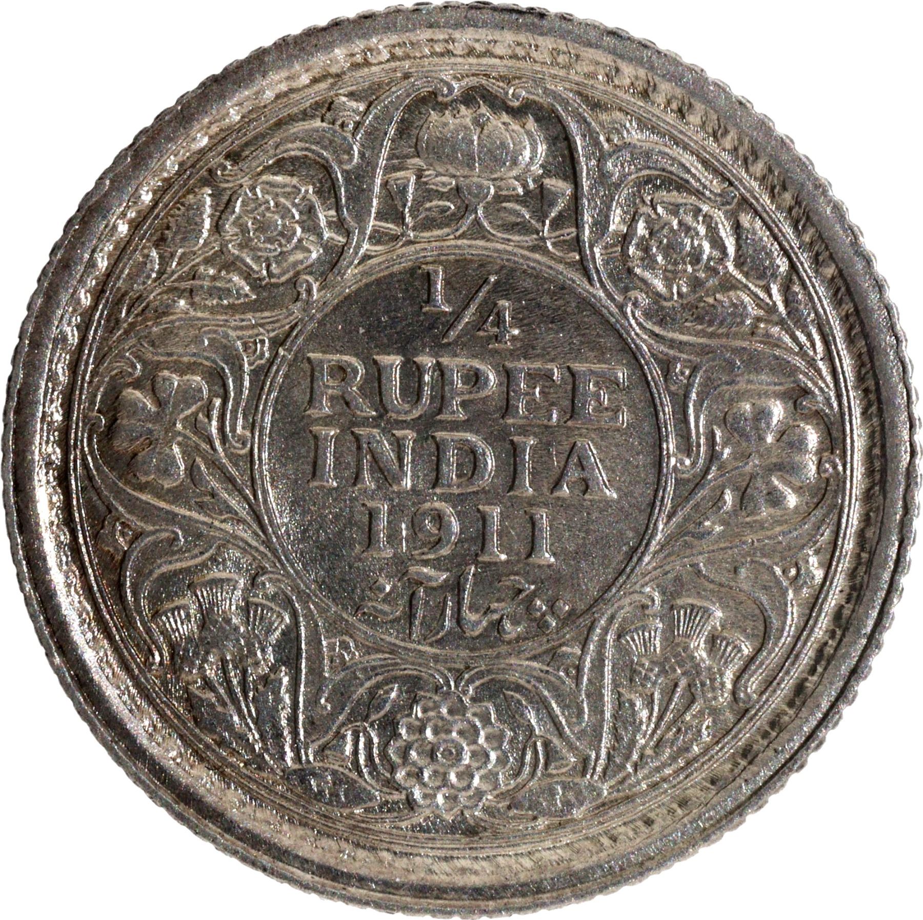 1911, King George V, Silver ¼ Rupee, Calcutta Mint, no dot, pig type, (PR # 440/GK # 1080), strong features, superb quality, AU, Very Rare.