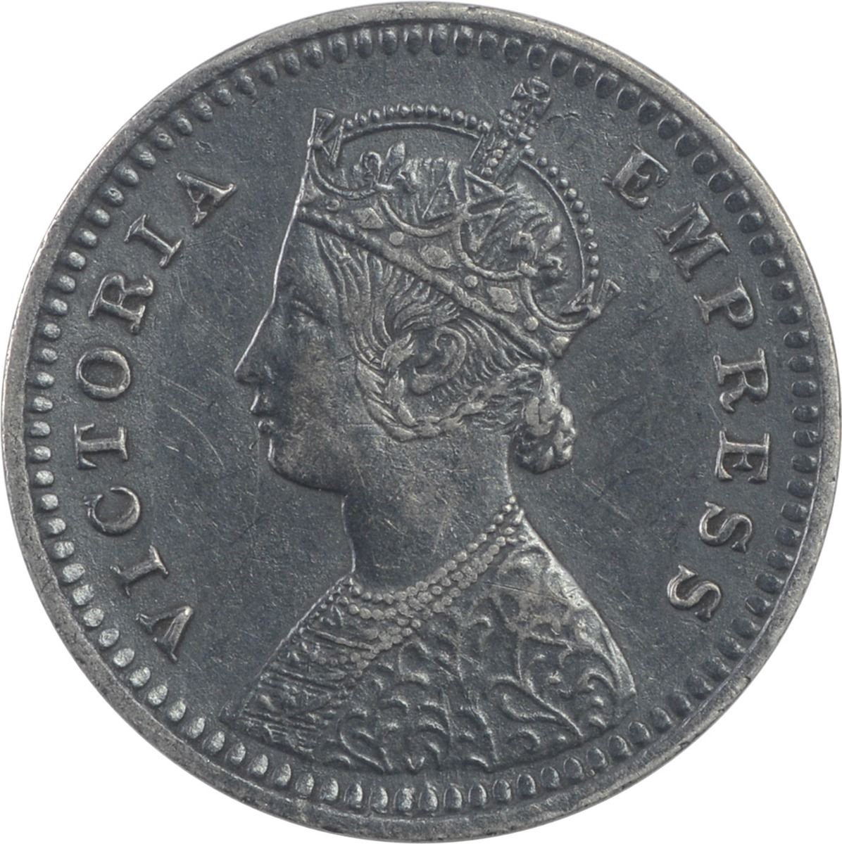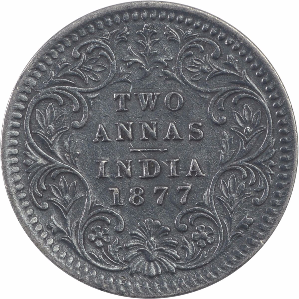 Very Rare Silver Two Annas Coin of Victoria Empress of Bombay Mint of 1877.