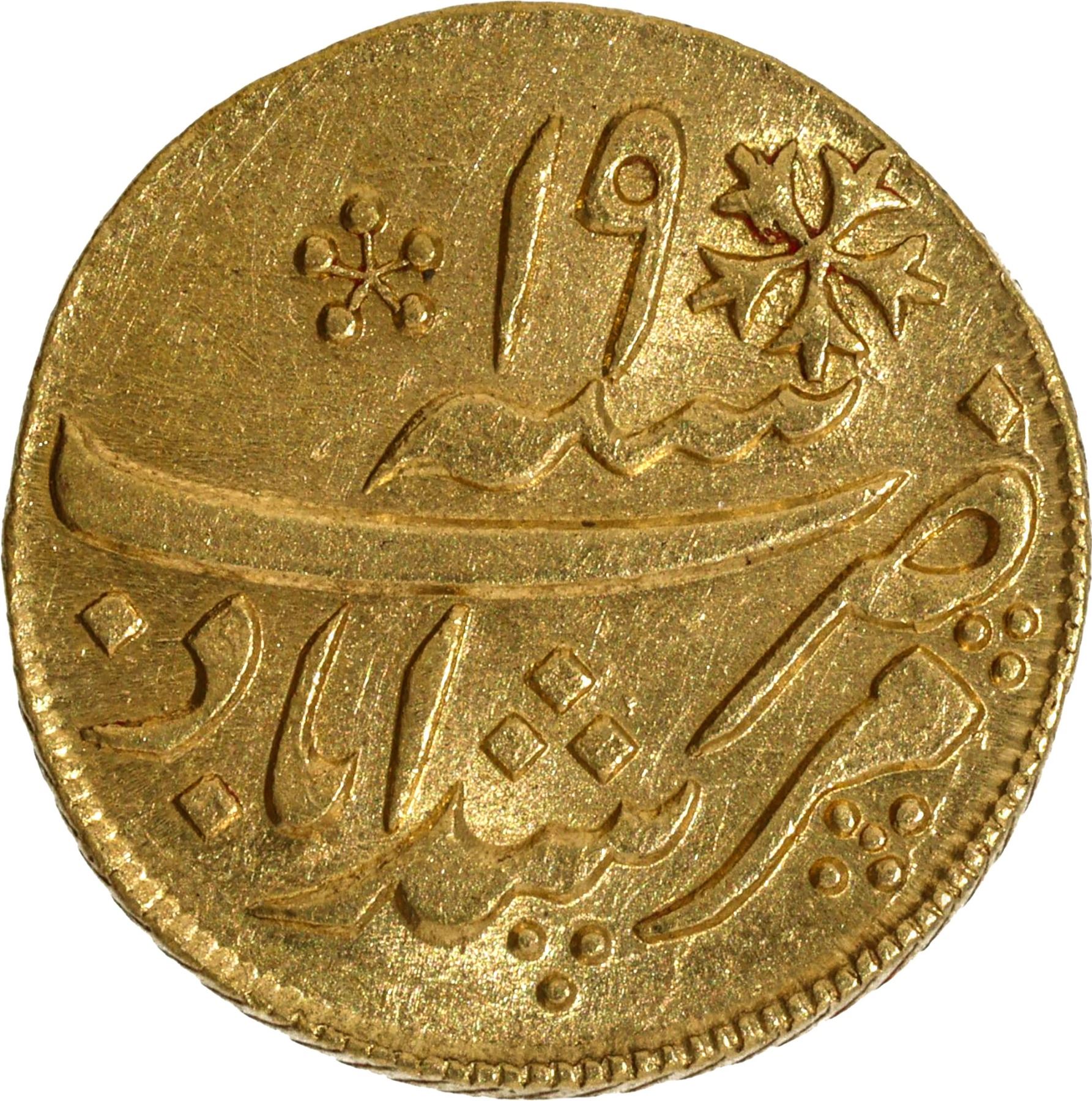 Bengal Presidency, Murshidabad Mint, Gold ¼ Mohur, AH 1204/19 RY, In the name of Shah Alam II, Obv: Persian legend "Sikka Shah Alam Badshah" with 1204, Rev: Persian legend "zarb Murshidabad with Sana 19", 3.02g, 16.85mm, (KM # 100/Stevens # 6.5/PR # 81),UNC, Very Rare.