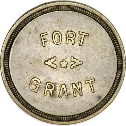 <B>Very Scarce Fort Grant, Arizona 25 Cent Token.</B></I> AZ-120NA, R.8, Fort Grant Arizona,<B> </B></I>brass, 26 mm, good for 25 cents at exchange. This outstanding token and should bring the military and Arizona collectors on a collision course. <BR> <BR><BR><b>Shipping:</b> Coins & Currency (<a target="_blank" href="http://www.heritageauctions.com/common/shipping.php">view shipping information</a>)