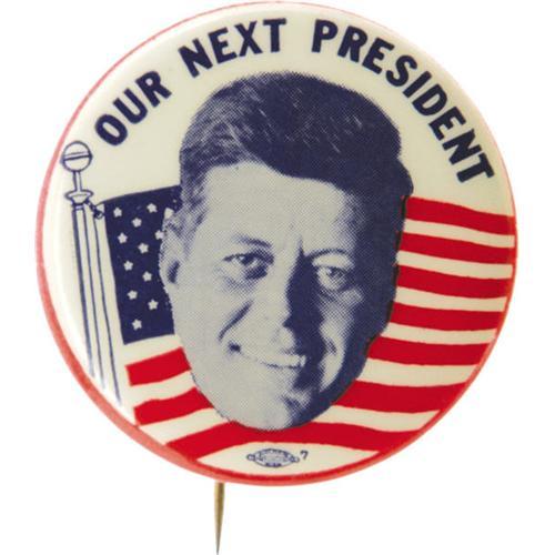 <B>Very Scarce Kennedy 1 3/4" Pinback.</B></I> "Our Next President" floats above a smiling full-face JFK portrait placed over an American flag. A colorful button with a lot of visual impact and deservedly popular. Excellent condition.<BR><BR><b>Shipping:</b> Miscellaneous Collectibles, Smal (<a target="_blank" href="http://www.heritageauctions.com/common/shipping.php">view shipping information</a>)