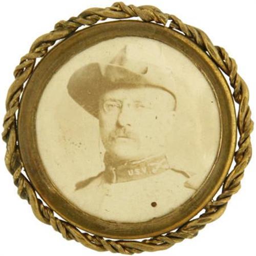 <B>Very Scarce Theodore Roosevelt Rough Rider Campaign Button,</B></I> 1 ½”, with brass rim. Unusual backpaper. Some light fading, else fine. <B></B></I><BR><BR><b>Shipping:</b> Miscellaneous Collectibles, Smal (<a target="_blank" href="http://www.heritageauctions.com/common/shipping.php">view shipping information</a>)