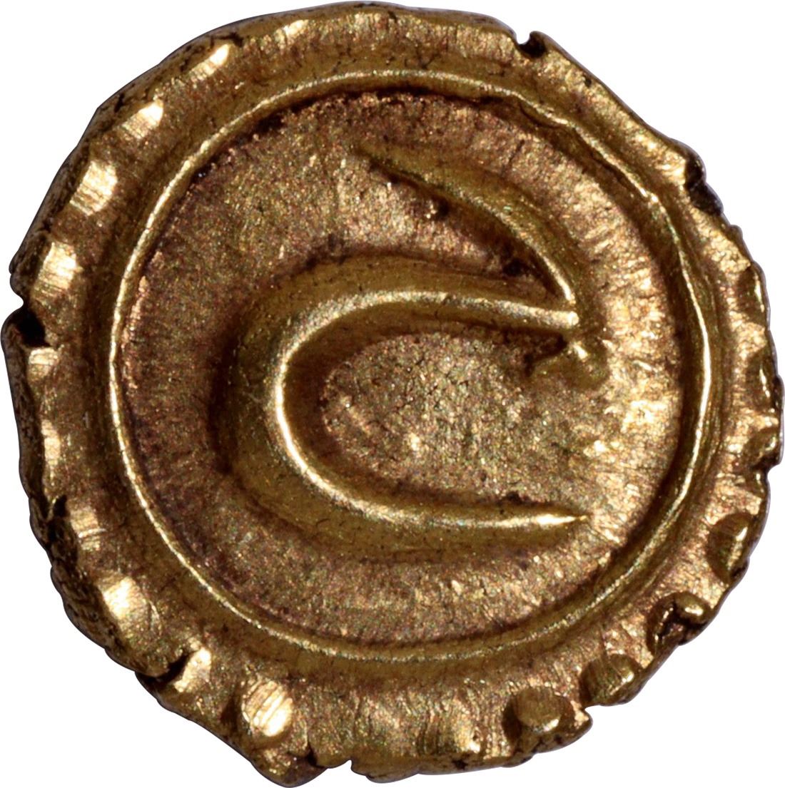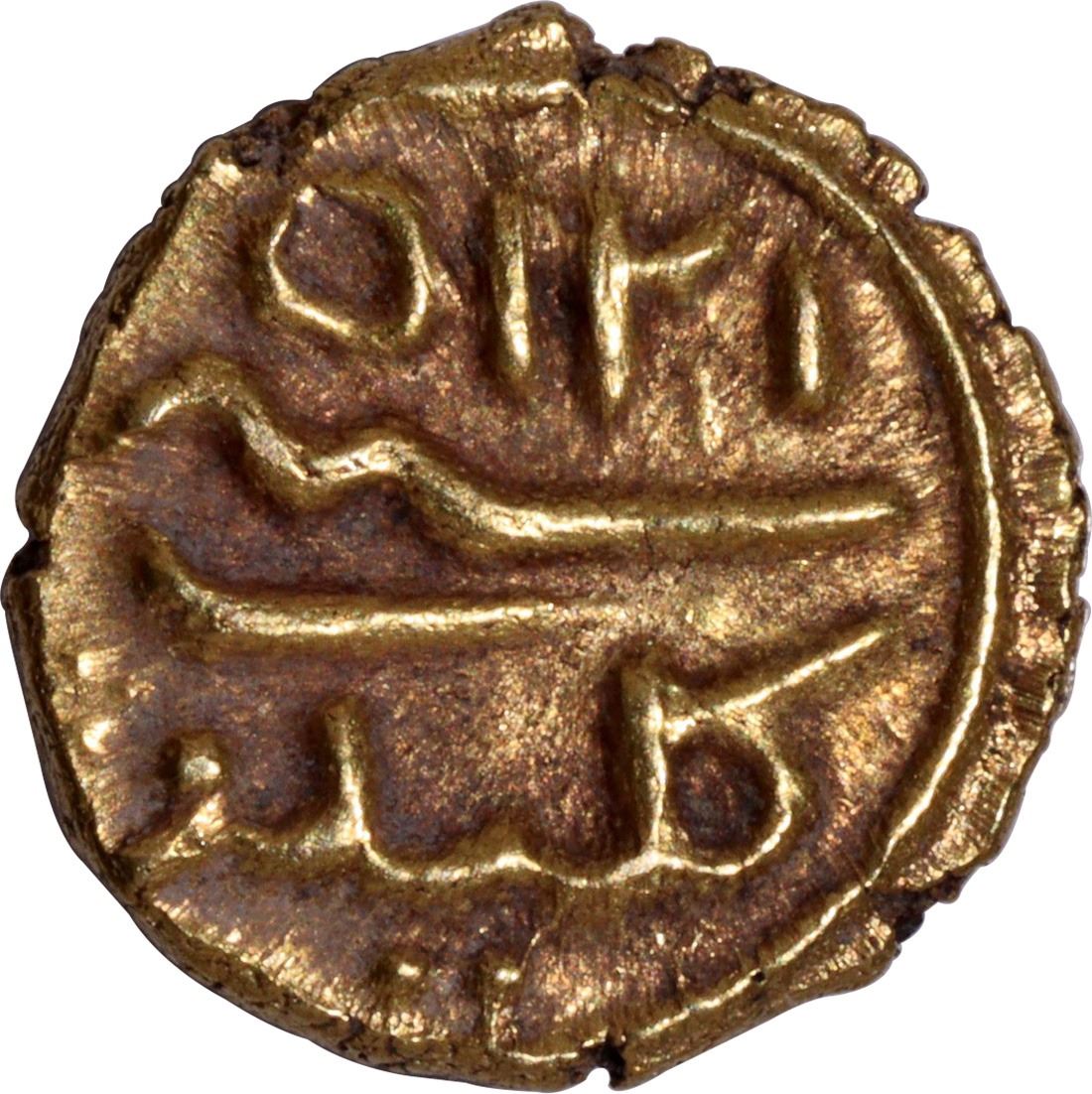 Mysore Kingdom, Tipu Sultan (AH 1197-1213 /1782-1799 AD), Kalikut Mint, Gold Fanam, AM 1215 (1786 AD), Maludi Era, Obv: Persian letter "Ha" within a circle and dotted border, Rev: Persian legend "zarb Kalikut" & "1215 year" within a circle, 0.38g, 7.38mm, (KM # 78), about extremely fine,Very Scarce.