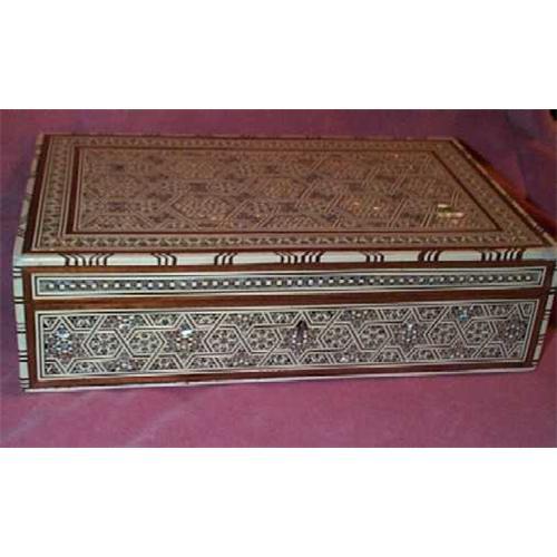 This lovely box was made by a true artisan. The workmanship is truly a sight for any one's eyes~ Size: 10" wide by 2 3/4 " high 6 " in depthWould make a wonderful gift.Note: Byer Pays S&H+Ins.Thanks for stopping.Come again.