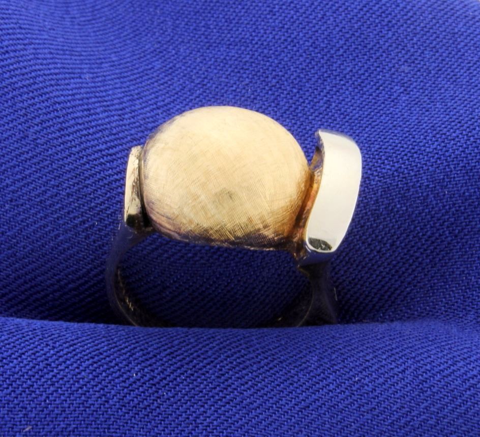 The ring is 14K yellow and white gold with a satin finish on rounded part. Size 6 3/4 11.7g