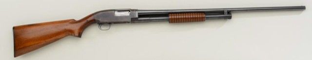 Very desirable Winchester Model 12 pump action takedown shotgun, factory original 28 gauge, 2-7/8” chamber, full choke, 28” barrel, blue finish, wood stocks, #750468. This gun is in overall very good pluscondition with the majority of its original blue finish on barrel assembly and approx. 70% drifting original blue finish on receiver, fine bore, action and markings are good; wood is overall very good plus with acouple old slight mars and scratches to finish from storage. Original 28’s are hard-to-find as most are conversions. The stock measures 14-1/2” to the end of butt plate and is factory original specs. Est.:$2,500-$5,000.