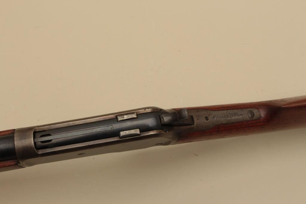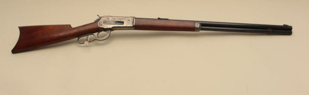 EX caliber, 26” round barrel, blued and case hardened finish, wood stocks, S/N 82213, in overall fine condition displaying the majority of its original blued finish to barrel and loading tube with majority of original case colors to receiver, crisp action, sharp markings, fine bore with very good wood stocks displaying normal aging and wear from carry and storage. (Antique). Est.: $6,000-$12,000.