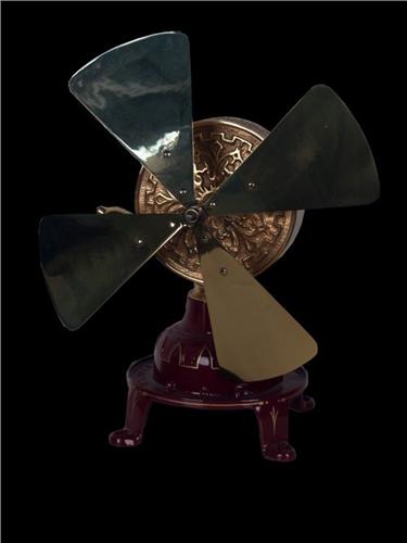 Very early Restored "Water Fan" Before electric fans were commonplace we used fans propelled by various means this one is plumbed into a water pipe and the more you opened the valve, the faster the fan would go (Jimmy Filler Collection)