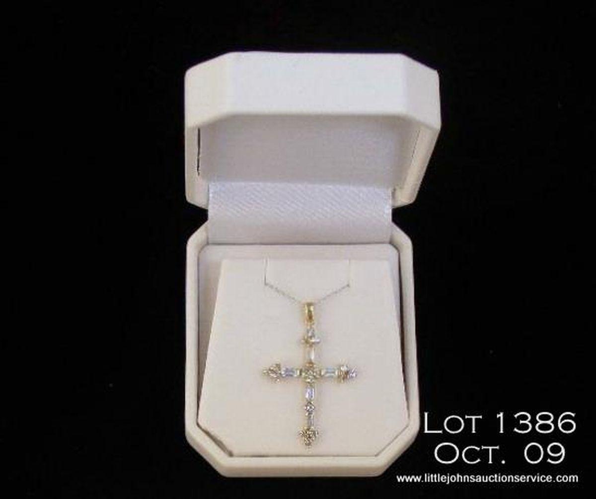 Very elegant 10 karat yellow gold ladies cross set with round and baguette cut aquamarines. Retail $850.00 Estimate $200-$300.