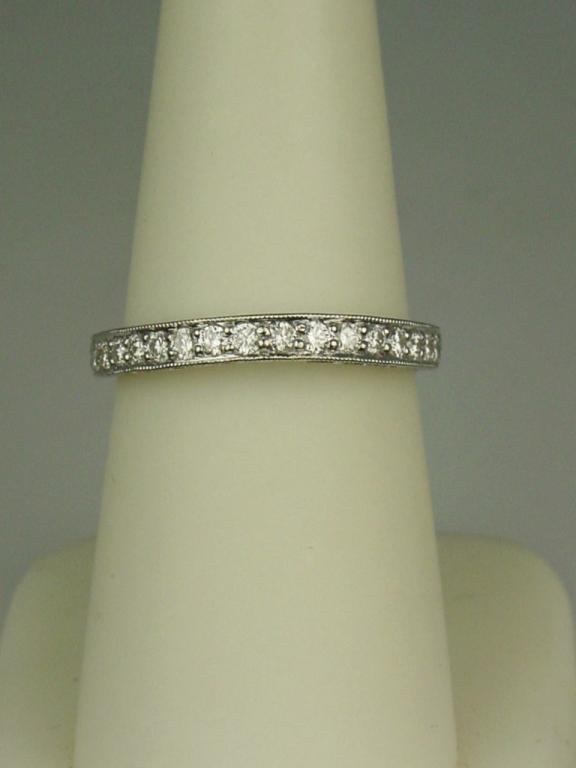 Very high quality 18 karat white gold ladies handmade anniversary design ring pave set with over 17 fine IDEAL cut diamonds weighing approx. 0.35 carats of F-G colors and VVS clarity. Retail $1,950.00 Estimate $600-$900