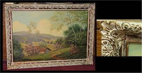 Very large vintage print in an ornate plaster frame. The frame measures 41" by 29 1/2"