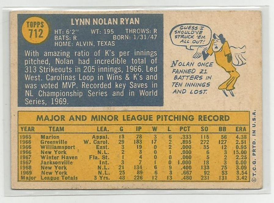 This Vintage 1970 Topps Nolan Ryan Card is in Excellent Condition.