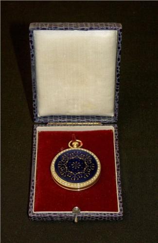 Très belle montre en or, émail et perles des deux côtés, signée NUMA WATCH, No 9047, cadran à chiffres romains, décor or, mouvement Unitas, env. 1950, en très bon état, avec étui