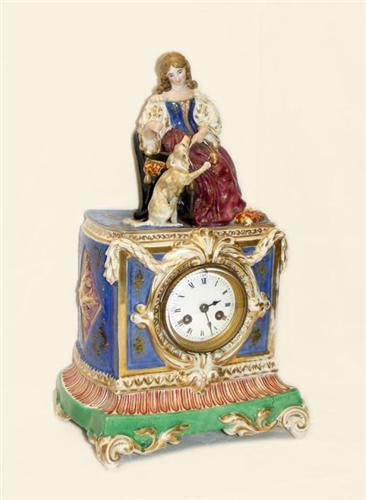 Très jolie pendule en porcelaine de Paris, fonctionne 8 jours, sonnerie heure et demie au passage, en très bon état, env. 1880