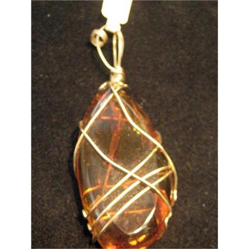 This is a very beautiful and large Amber with a Gold plated wire setting pendant in good condition. L:2.1/2" - W:1.1/2" .